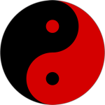 - ביקום השמיים למעלה והאדמה למטה. בהתאם לזאת, טבעו של היאנג לשאוף למעלה לכיוון השמיים, טבעו של היין לשאוף למטה לכיוון האדמה. גרסה זו של הסמל, ממחישה את איכות הכוחות ביקום: